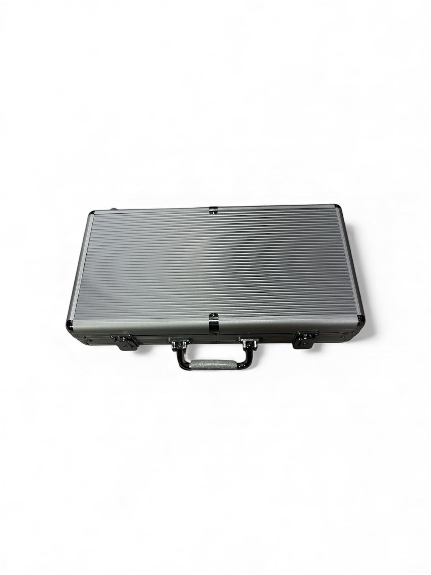 מזוודה קשיחה מאלומיניום מתאימה ל300 צ'יפים כולל מפתח לנעילת המזוודה .
